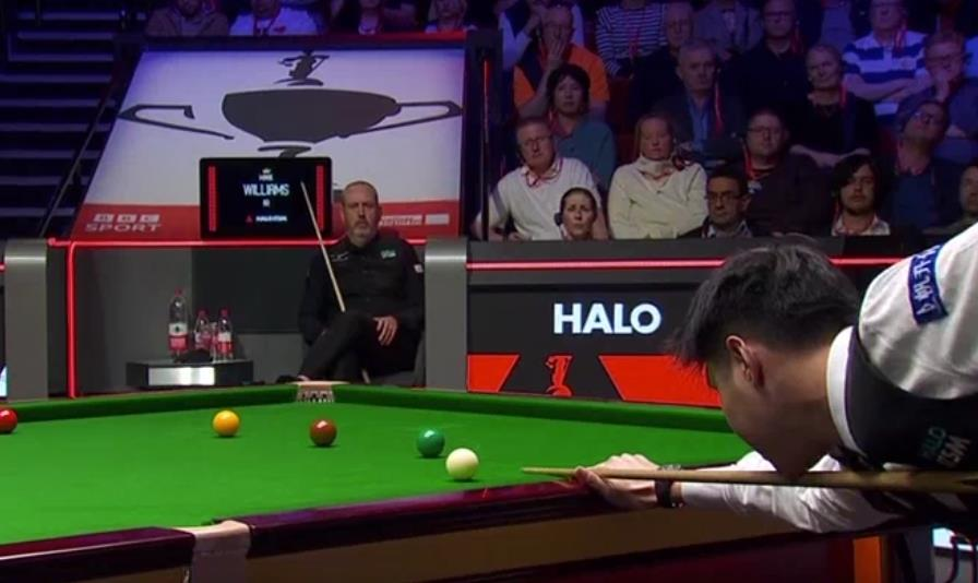 2025斯诺克世锦赛决赛采用35局18胜赛制,分四个阶段(8/9/8/10)进行。5月4日,在决赛第一阶段中,赵心童状态神勇,7比1领先马克·威廉姆斯。5月5日,决赛第二阶段9局过后,赵心童以11比6领先马克·威廉姆斯。决赛第三阶段,赵心童再赢6局,总比分17比8领先马克·威廉姆斯。